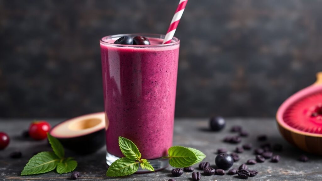 Vibrant acai smoothie artfully crafted for ultimate flavor and function.