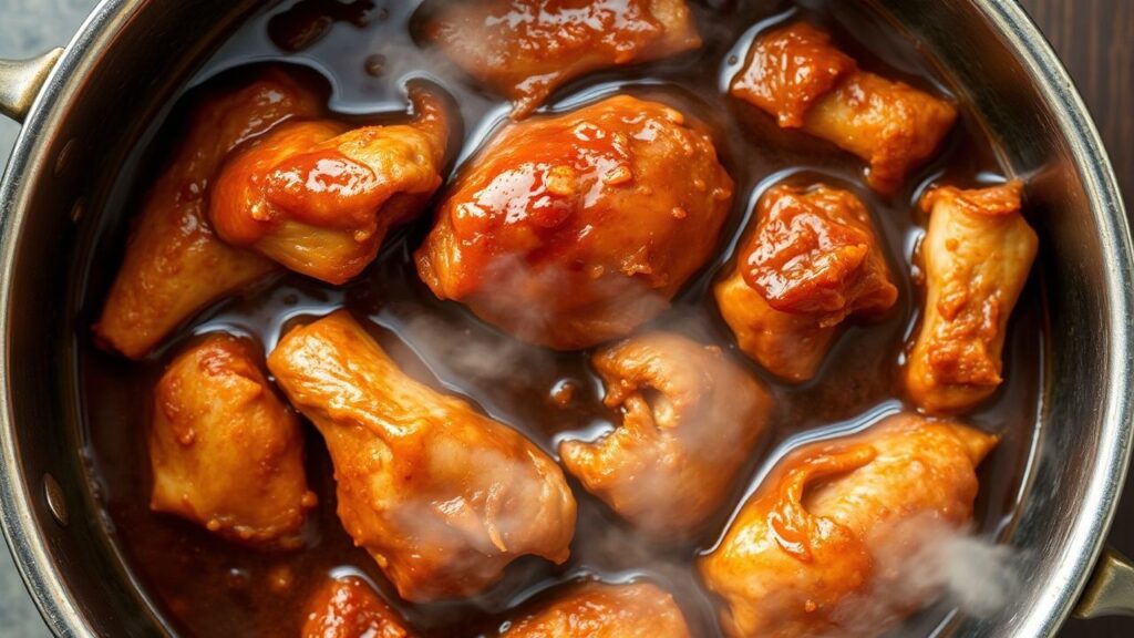 When simmering, ensure the heat is low and consistent. A gentle simmer allows the chicken to cook through without drying out, while the flavors of the marinade slowly infuse into the meat. If the liquid evaporates too quickly, you can always add a little more water or broth, though this should be done sparingly to maintain the concentrated flavor profile.