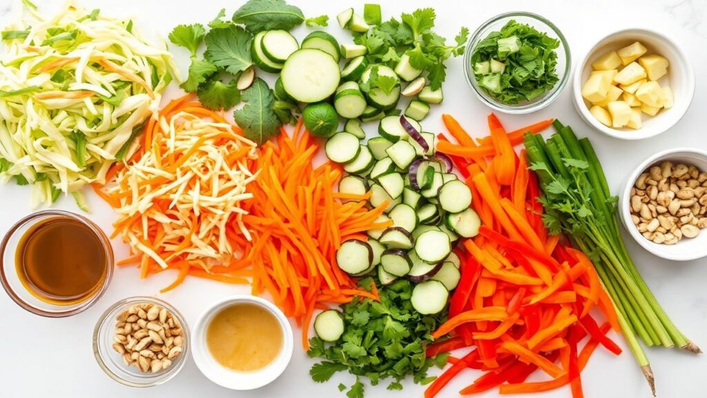 • Julienned Cucumber: 1 large English cucumber (about 250g / 8.8 oz), seeded. For a refreshing, cool crunch.