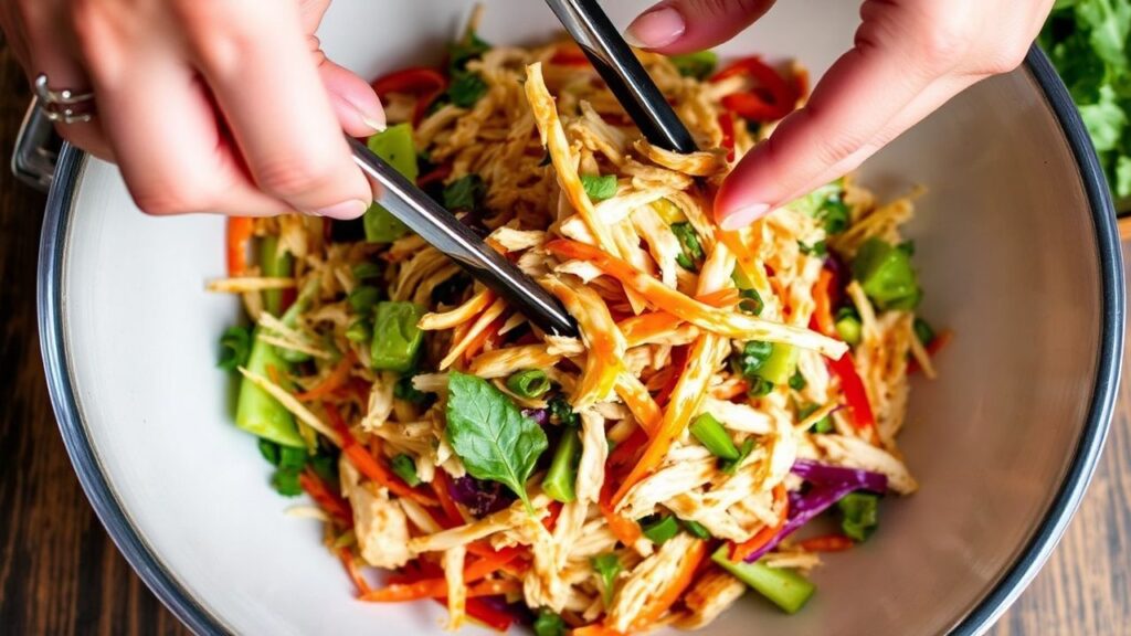 This methodical approach ensures that each element plays its part. The initial dressing of the cabbage and chicken allows for proper flavor infusion. The “resting” period, often overlooked in quick-prep recipes, is akin to allowing a fine wine to breathe – it permits the complex chemical reactions that deepen and harmonize flavors. By adding the fresh herbs and crunchy elements at the very end, we preserve their vibrancy and textural integrity. It’s a technique borrowed from many high-end restaurants, where textural contrast is as important as flavor profile. For example, a chef might prepare the base elements of a composed salad ahead of time, but only add delicate herbs and toasted nuts just before plating to ensure maximum impact. This meticulous layering is what elevates a simple chicken salad to something truly extraordinary. If you’re looking for more inspiration on vibrant vegetable preparations, exploring resources like Wikipedia’s entry on salads can offer a broad perspective on global salad traditions.