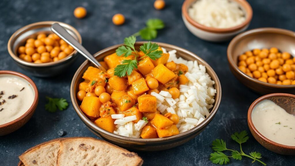 TAGGED:gluten-free curryhealthy curryIndian recipesplant-based mealsSouth Asian cuisinesweet potato chickpea curryvegan curry recipe