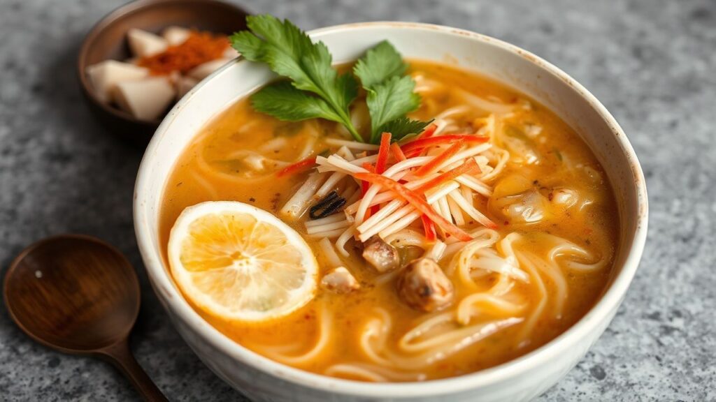 - The Soul of Khao Suey: The velvety, fragrant curry broth, built upon a foundation of toasted coconut milk and aromatic spices, is the undisputed heart of this dish.
