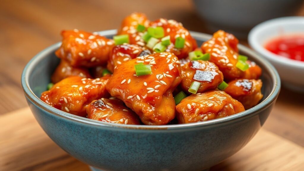 While the first batch of chicken is resting, prepare the glaze. In a medium saucepan, combine the gochujang, ketchup, honey (or corn syrup), soy sauce, rice vinegar, mirin, minced garlic, grated ginger, and water. Bring the mixture to a gentle simmer over medium heat, stirring constantly. Cook for 3-5 minutes, or until the glaze has thickened slightly to a syrupy consistency. If the glaze becomes too thick, add a teaspoon of water at a time until it reaches your desired coating consistency. A well-balanced glaze should be glossy and cling to the chicken without being overly sticky or watery. This sauce, with its characteristic blend of sweet, savory, and spicy notes, is a hallmark of Korean cuisine, drawing parallels to the complex flavor profiles found in dishes like bibimbap.
