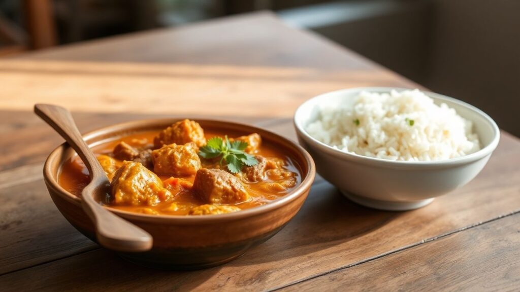 - Serving Massaman with fluffy jasmine rice is essential, as the rice acts as a perfect canvas to absorb the luxurious, aromatic sauce.