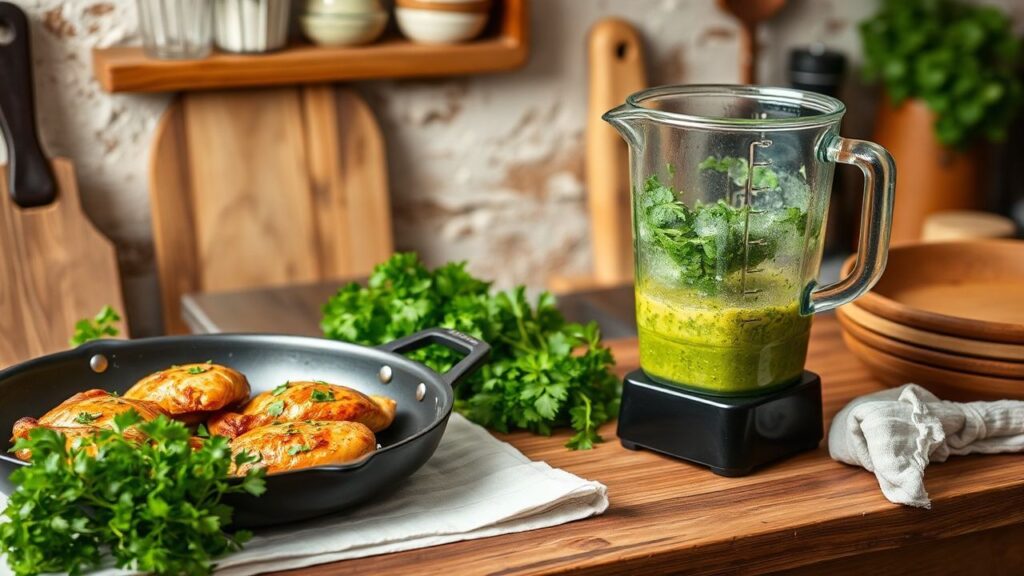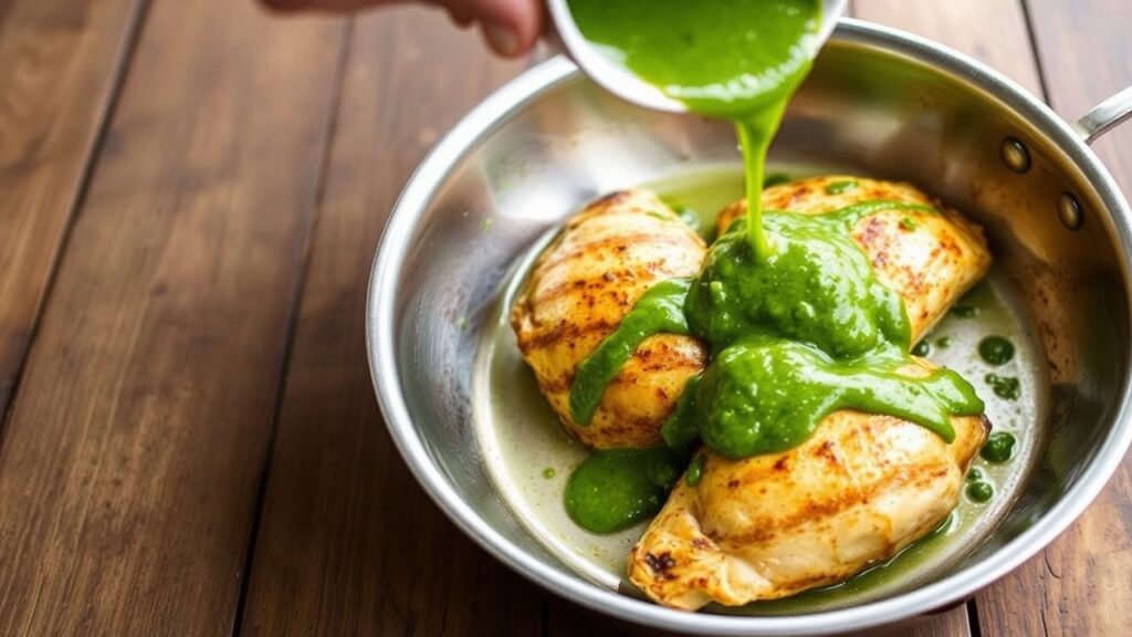 Before you start, set up mise en place: rinse and pat dry the chicken, measure the sauce components, and preheat the pan or grill to an even medium-high. This helps minimize splatter and ensures even browning. The goal is deeply browned chicken with a tender interior, paired with a vibrant, smooth green sauce.
