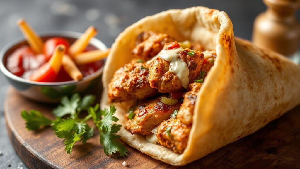 - Bread: Traditionally, thin Arabic flatbreads like pita or saj are used. Warm them slightly before assembling to make them pliable and enhance their aroma.