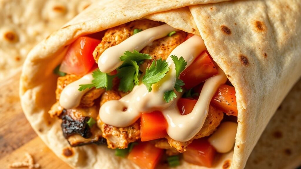 Approximate Nutritional Information per Serving (1 wrap, assuming ~150g chicken, standard toppings, and sauces):