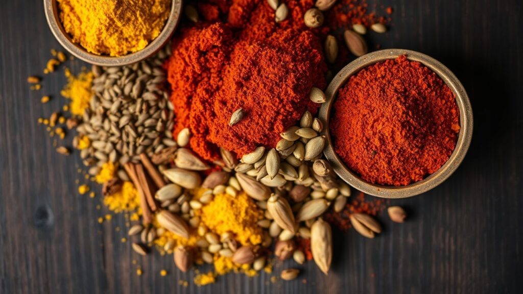 The precise ratios can vary, but a good starting point for a kilogram of chicken might be 2 tablespoons cumin, 2 tablespoons coriander, 1 tablespoon sweet paprika, 1 teaspoon smoked paprika, 1 teaspoon turmeric, 1 teaspoon garlic powder, 1 teaspoon onion powder, ½ teaspoon cinnamon, ¼ teaspoon ground cloves, and a pinch of cayenne.