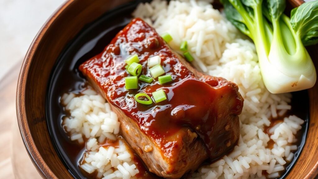 - Serve: Serve the Si-io Pork Belly hot, typically over steamed rice. Garnish with blanched bok choy and chopped scallions or cilantro for added color and freshness. The rich sauce should generously coat the rice and pork.