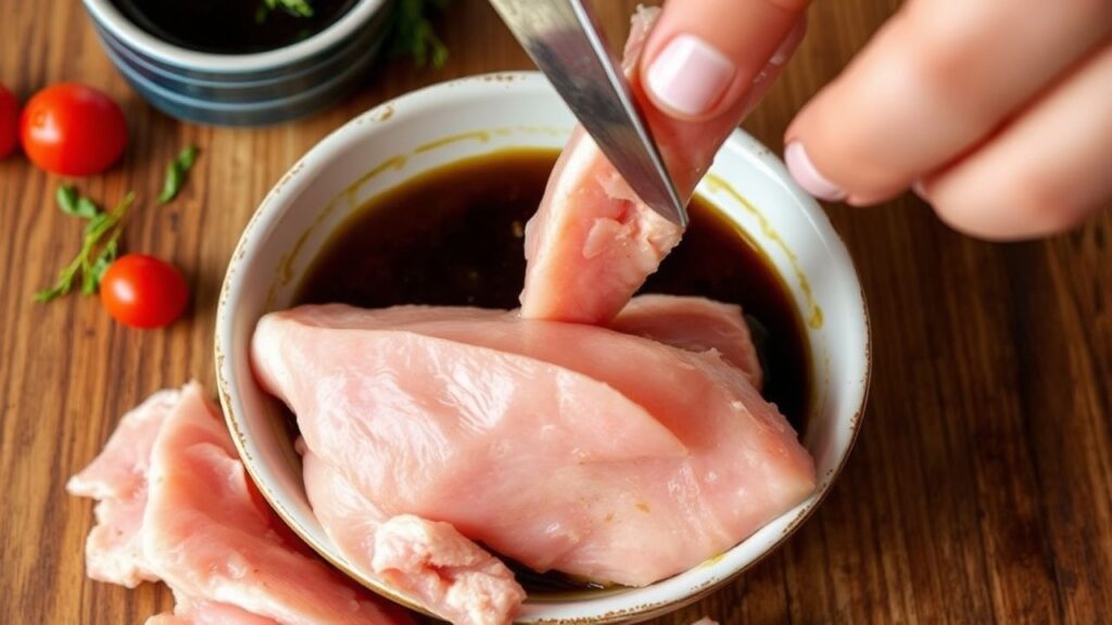 • Chicken Breast: Approximately 300-350g (10.5-12 oz), thinly sliced against the grain. Slicing against the grain ensures tenderness.