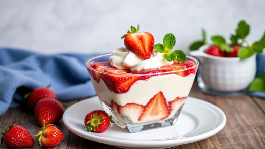 - Fresh mint sprigs or whole small strawberries, for garnish
