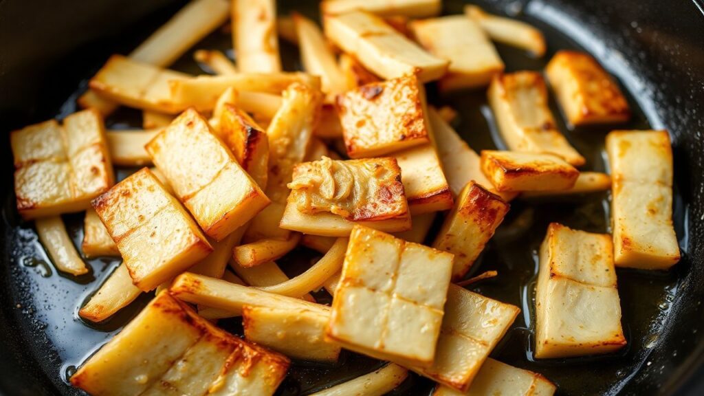 Ensure your tofu is thoroughly pressed to remove as much water as possible. Marinate it, then shave it thinly. When searing, use a high-heat oil and avoid overcrowding the pan. Cook in batches if necessary, allowing each piece ample space to develop a good sear and crispy edges. Some chefs also recommend a light dusting of cornstarch or arrowroot powder over the marinated tofu just before searing for an even crispier finish.