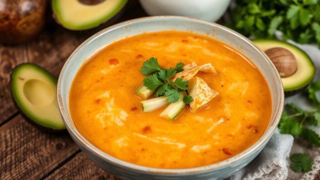 Serving and presentation tips elevate the dish. A bright green cilantro dust, a few avocado slices, and crisp tortilla strips create visual appeal and textural contrast. For a restaurant-worthy finish, ladle the soup into bowls, then top with a drizzle of crema and a pinch of paprika or chili powder for color.