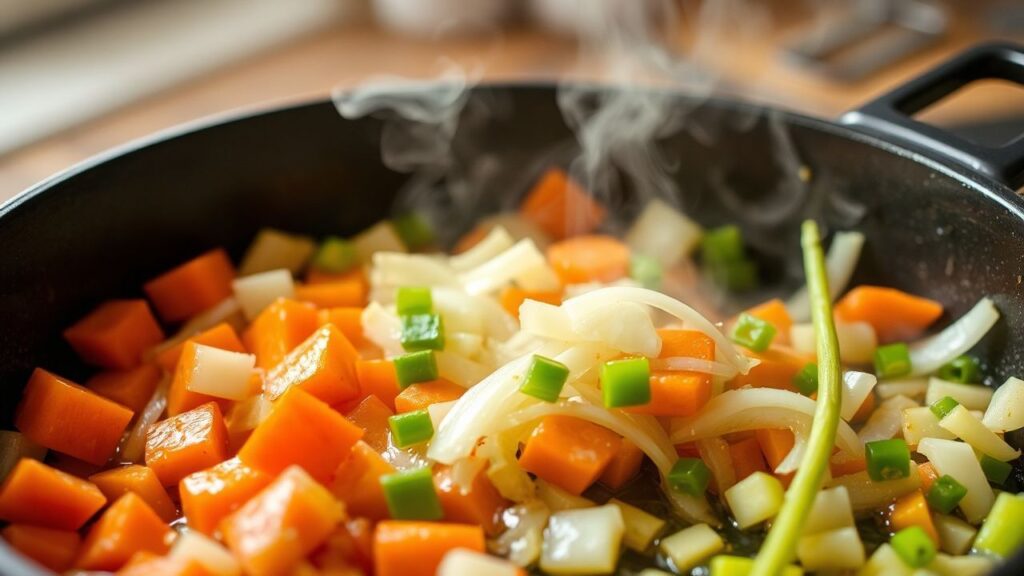 Begin by heating a generous amount of good quality olive oil or butter in a large, heavy-bottomed pot or Dutch oven over medium heat. Add your finely diced mirepoix (onions, carrots, celery). Sauté gently, stirring occasionally, for 8-10 minutes, or until the vegetables are softened and translucent but not browned. This process, known as sweating the vegetables, releases their natural sugars and creates a sweet, aromatic foundation. If using garlic or leeks, add them during the last 2-3 minutes of the sauté, being careful not to burn them.
